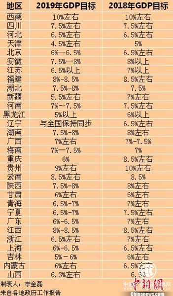 不過(guò),也有省份設(shè)定的2019年GDP目標(biāo)與去年持平。