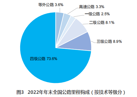 年末全國國道里程37.95萬公里,省道里程39.36萬公里。農(nóng)村公路里程453.14萬公里,其中縣道里程69.96萬公里、鄉(xiāng)道里程124.32萬公里、村道里程258.86萬公里。