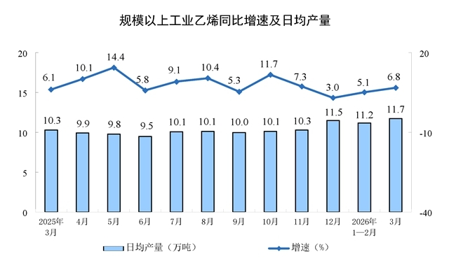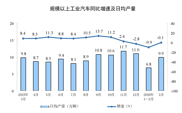 分產(chǎn)品看,3月份,規(guī)模以上工業(yè)626種產(chǎn)品中有329種產(chǎn)品產(chǎn)量同比增長。其中,鋼材13098萬噸,同比下降2.3%;水泥12310萬噸,下降21.0%;十種有色金屬707萬噸,增長2.2%;乙烯364萬噸,增長6.8%;汽車306.7萬輛,下降0.1%,其中新能源汽車133.6萬輛,增長1.2%;發(fā)電量8025億千瓦時,增長1.4%;原油加工量6167萬噸,下降2.2%。