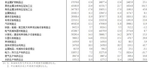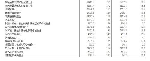 1-7月份,在41個(gè)工業(yè)大類(lèi)行業(yè)中,37個(gè)行業(yè)利潤(rùn)總額同比增加,4個(gè)行業(yè)減少。主要行業(yè)利潤(rùn)情況如下:煤炭開(kāi)采和洗選業(yè)利潤(rùn)總額同比增長(zhǎng)13.7倍,農(nóng)副食品加工業(yè)增長(zhǎng)5.7%,紡織業(yè)增長(zhǎng)5.4%,石油加工、煉焦和核燃料加工業(yè)增長(zhǎng)25.1%,化學(xué)原料和化學(xué)制品制造業(yè)增長(zhǎng)32.2%,非金屬礦物制品業(yè)增長(zhǎng)25.1%,黑色金屬冶煉和壓延加工業(yè)增長(zhǎng)1倍,有色金屬冶煉和壓延加工業(yè)增長(zhǎng)45.6%,通用設(shè)備制造業(yè)增長(zhǎng)18.1%,專(zhuān)用設(shè)備制造業(yè)增長(zhǎng)22.6%,汽車(chē)制造業(yè)增長(zhǎng)11.9%,電氣機(jī)械和器材制造業(yè)增長(zhǎng)8.7%,計(jì)算機(jī)、通信和其他電子設(shè)備制造業(yè)增長(zhǎng)15.3%,石油和天然氣開(kāi)采業(yè)由同期虧損轉(zhuǎn)為盈利,電力、熱力生產(chǎn)和供應(yīng)業(yè)利潤(rùn)總額同比下降31.7%。