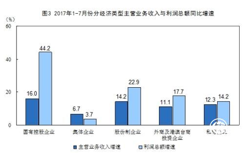 1-7月份,規(guī)模以上工業(yè)企業(yè)中,國(guó)有控股企業(yè)實(shí)現(xiàn)利潤(rùn)總額9273.9億元,同比增長(zhǎng)44.2%;集體企業(yè)實(shí)現(xiàn)利潤(rùn)總額259.4億元,增長(zhǎng)3.7%;股份制企業(yè)實(shí)現(xiàn)利潤(rùn)總額29907.3億元,增長(zhǎng)22.9%;外商及港澳臺(tái)商投資企業(yè)實(shí)現(xiàn)利潤(rùn)總額10197.7億元,增長(zhǎng)17.7%;私營(yíng)企業(yè)實(shí)現(xiàn)利潤(rùn)總額14161.6億元,增長(zhǎng)14.2%。