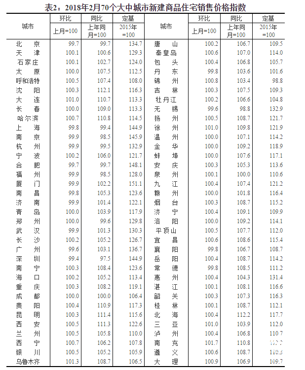 記者19日從國家統(tǒng)計局獲悉,2018年2月份15個熱點城市新建商品住宅銷售價格延續(xù)總體穩(wěn)定態(tài)勢,12個城市環(huán)比下降。70個大中城市中一線城市新建商品住宅銷售價格環(huán)比降幅擴(kuò)大,二線城市價格漲幅回落,三線城市漲幅與上月相同;一線城市新建商品住宅銷售價格同比繼續(xù)下降,二三線城市漲幅略有擴(kuò)大。國家統(tǒng)計局城市司高級統(tǒng)計師劉建偉指出,2月份商品住宅銷售價格延續(xù)總體穩(wěn)定態(tài)勢。