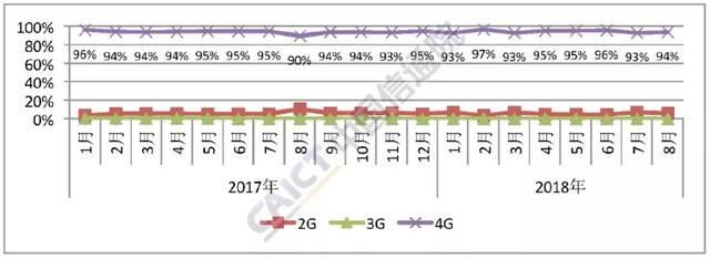 圖2 2017年至2018年8月4G手機(jī)出貨量占比