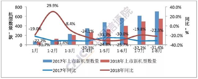 圖3 2018年1-8月國內(nèi)手機(jī)上市新機(jī)型數(shù)量