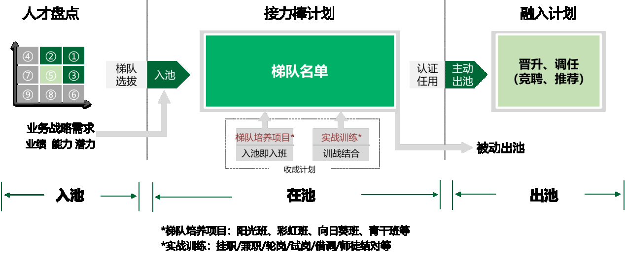 在人才盤點后,綠城中國全面了解了公司內(nèi)部的人才結(jié)構(gòu),并制定了相應(yīng)的人才策略。根據(jù)盤點結(jié)果,綠城中國開展接力棒計劃,依據(jù)721原則設(shè)計了梯隊發(fā)展項目、高管師帶徒、定向輪崗、專項歷練等訓(xùn)戰(zhàn)結(jié)合的培養(yǎng)模式。同時試點“觀察員機制”,對梯隊人員進行行為觀察及能力判斷,及時發(fā)現(xiàn)長短板,過程反饋,在培養(yǎng)過程中識別人才,促進自我認知和發(fā)展,最終以資格認證的形式對梯隊人員的領(lǐng)導(dǎo)力、專業(yè)力及關(guān)鍵經(jīng)歷等綜合判斷,應(yīng)用于晉升或調(diào)任,實現(xiàn)人才快速出池。