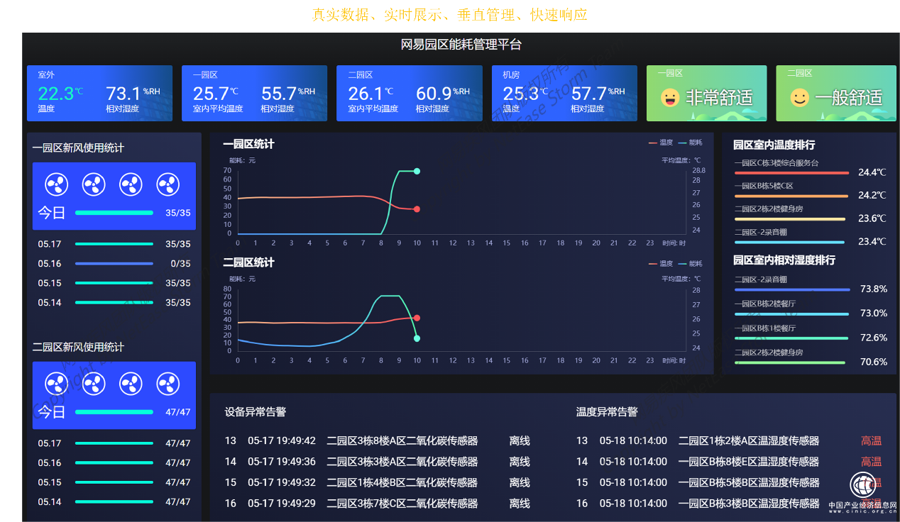 “雙碳”智控系統(tǒng)由網(wǎng)易杭州研究院疾風(fēng)IoT團(tuán)隊自主研發(fā),已應(yīng)用于網(wǎng)易辦公園區(qū)、網(wǎng)易嚴(yán)選全國倉庫、網(wǎng)易味央豬場。該系統(tǒng)智慧集成了IoT、數(shù)據(jù)管理、AR、VR等多項技術(shù),可以對園區(qū)環(huán)境進(jìn)行在線監(jiān)測,遠(yuǎn)控、自控、智控園區(qū)的照明、空調(diào)、新風(fēng)、排風(fēng)、排水等系統(tǒng)。