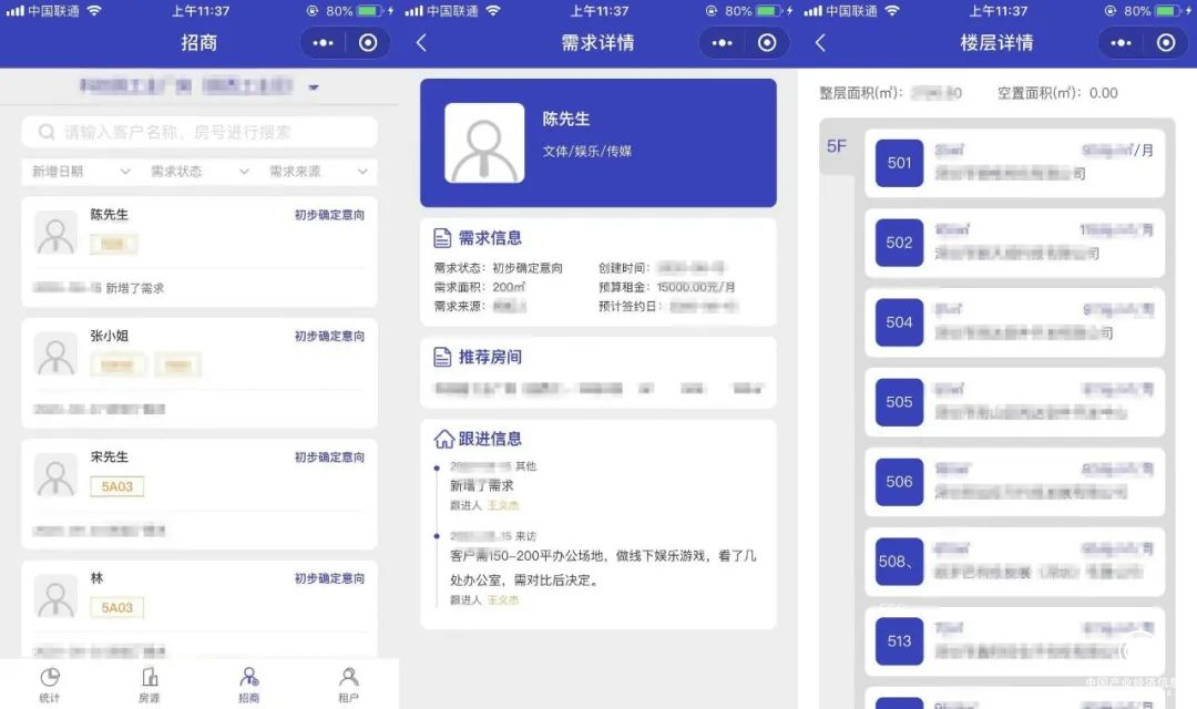 就如寫字樓業(yè)主可借助吉辦托管的線上智能化系統(tǒng),隨時(shí)隨地實(shí)現(xiàn)查看實(shí)時(shí)的招商動(dòng)態(tài),包括:租客詳情、租客訴求及招商工作是否到位等等。