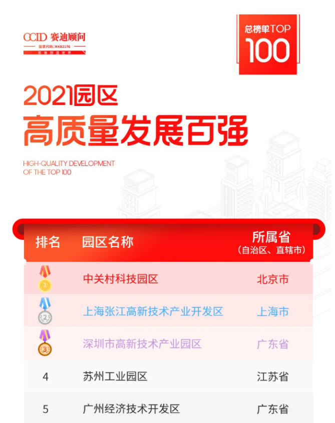 日前,賽迪顧問(wèn)園區(qū)經(jīng)濟(jì)研究中心發(fā)布“園區(qū)高質(zhì)量發(fā)展百?gòu)?qiáng)(2021)”榜單,中關(guān)村科技園區(qū)、上海張江高新技術(shù)產(chǎn)業(yè)開發(fā)區(qū)、蘇州工業(yè)園、深圳市高新技術(shù)產(chǎn)業(yè)園、廣州經(jīng)濟(jì)技術(shù)開發(fā)區(qū)等園區(qū)位列榜單TOP10。