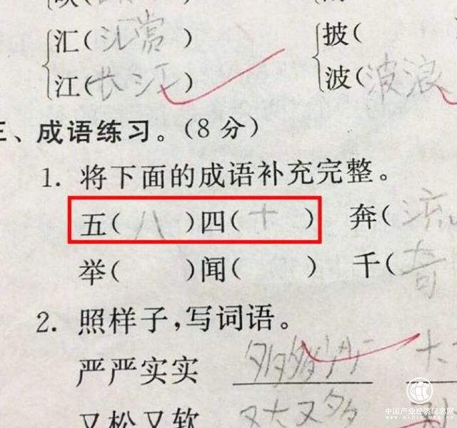 “五八四十”簡直讓人笑噴,數(shù)學(xué)乘法口訣都跨界了。老師想考的是“五湖四海”吧?