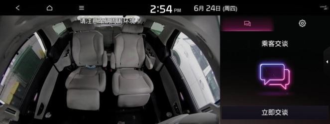 同時,第四代嘉華通過第二排正前方的攝像頭,實現(xiàn)了后排“乘客視圖”功能。二、三排乘員的動態(tài)可通過中控屏進行投屏顯示,方便前排時刻“掌握”后排乘客情況,不僅視覺范圍更大、視覺效果更佳,而且還可以通過對話模式進行互動。