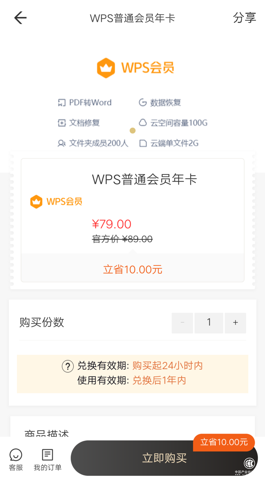 然后我還用到的一個就是WPS會員,作為一名編輯工作者,常備WPS會員是很有必要的,不僅在空間上會擴大到100G,還可以Word、PDF直接互相轉(zhuǎn)換,全文審核等權益,都是日常需要。在WPS里面一年是89元,無優(yōu)惠,在騎士卡上是79元,比WPS里面購買便宜了10元,夠我吃兩天的早餐了,還是很不錯的。