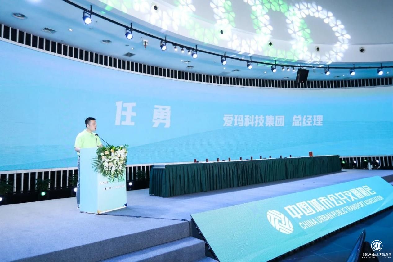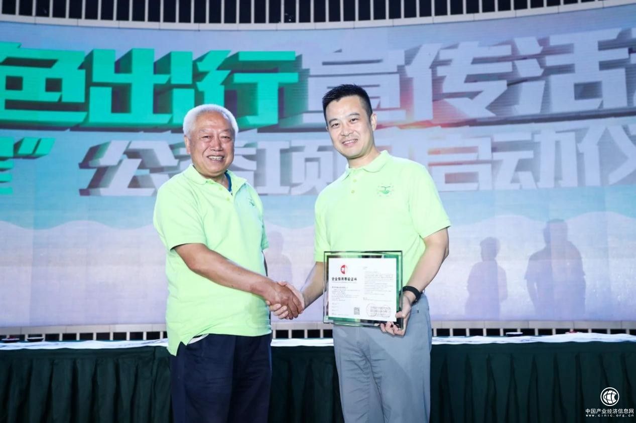 ▲中國城市公共交通協(xié)會理事長許中志為愛瑪綠色出行誠信企業(yè)