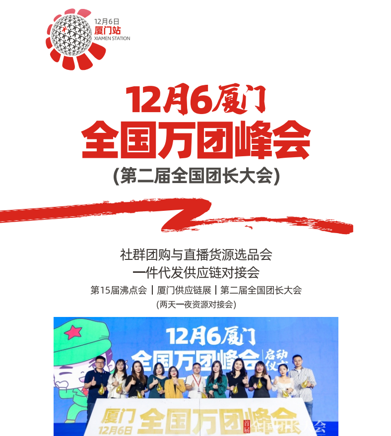 廈門是沸點的福地,自2019年開始,每年都在廈門舉辦一場行業(yè)大會,今年定于12月6-7日召開。廈門周邊貨源方聚集,有很多的食品企業(yè)、衛(wèi)品企業(yè)、服裝鞋包、凍品海產(chǎn)品等豐富的貨源。并且交通便利,方便平臺渠道方、團長來選品。當(dāng)?shù)匾灿幸慌鷥?yōu)秀的社群團購平臺和團長可以對接資源。