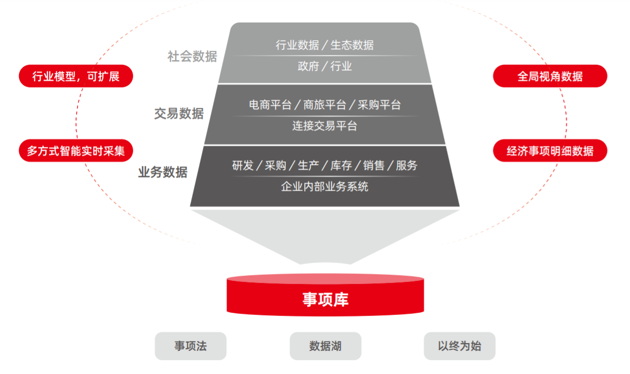 其次,企業(yè)可圍繞著三大場(chǎng)景數(shù)據(jù)——財(cái)務(wù)管理目標(biāo)數(shù)據(jù)、戰(zhàn)略轉(zhuǎn)型關(guān)鍵指標(biāo)數(shù)據(jù)、特定經(jīng)營(yíng)場(chǎng)景的決策分析數(shù)據(jù)構(gòu)建大數(shù)據(jù)事項(xiàng)庫(kù),打造多維度數(shù)據(jù)采集。