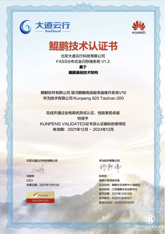 近日,北京大道云行科技有限公司(以下簡(jiǎn)稱:大道云行)獲得鯤鵬Validated認(rèn)證。大道云行聯(lián)合江蘇“鯤鵬+昇騰”生態(tài)創(chuàng)新中心、北京鯤鵬聯(lián)合創(chuàng)新中心,基于華為鯤鵬服務(wù)器底座、銀河麒麟高級(jí)服務(wù)器操作系統(tǒng)V10、鯤鵬BoostKit對(duì)FASS分布式全閃存儲(chǔ)系統(tǒng)(以下簡(jiǎn)稱:FASS)進(jìn)行深度優(yōu)化,使其在塊存儲(chǔ)4k場(chǎng)景下性能最高提升20%以上。