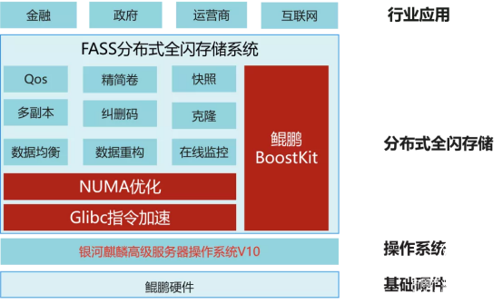 使用鯤鵬應(yīng)用使能套件BoostKit,對(duì)FASS分布式全閃存儲(chǔ)系統(tǒng)進(jìn)行全棧調(diào)優(yōu),包括但不限于 :