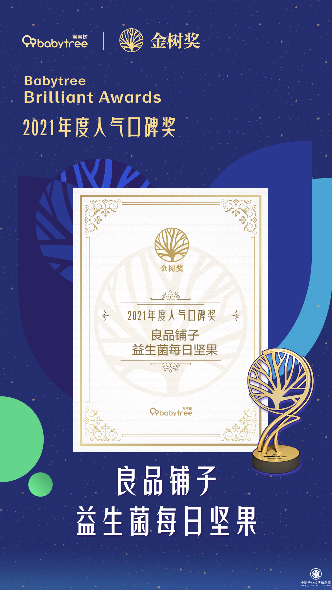 近日,良品鋪子益生菌每日堅果在寶寶樹主辦的金樹盛典上獲得了“2021年度人氣口碑獎”。據(jù)悉,在母嬰行業(yè),寶寶樹發(fā)起的金樹獎有“母嬰界的奧斯卡”之稱。