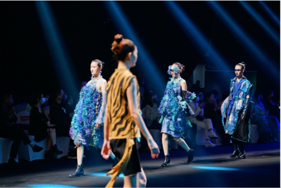 此次活動在深圳福田天安數(shù)碼城時尚廣場舉行,年輕、熱血、愛國、有理想、有社會擔(dān)當(dāng)?shù)那嗄暝O(shè)計師不僅展示了服裝創(chuàng)作的專業(yè)才華,更以面料為載體,用時尚創(chuàng)作為環(huán)保、可持續(xù)發(fā)展理念發(fā)聲,聚焦社會問題、關(guān)注生存環(huán)境,與時代主題同頻共振。