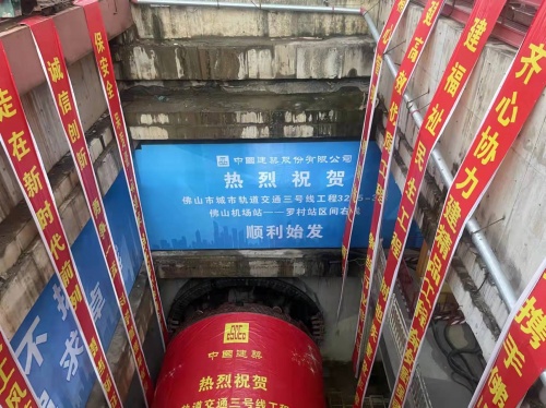 佛山市城市軌道交通3號(hào)線佛山機(jī)場(chǎng)站至羅村站右線盾構(gòu)順利始發(fā)。通訊員 供圖