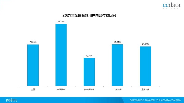 在知識與服務付費時代,版權(quán)保護意識越來越強烈,付費模式日漸成為主流互聯(lián)網(wǎng)平臺贏利模式的重要組成部分。數(shù)據(jù)顯示,75.9%的音頻用戶曾經(jīng)為內(nèi)容付費過,其中一線城市用戶付費率最高,達到83.7%。付費模式得到大家的廣泛認可與使用,對內(nèi)容與平臺的生態(tài)持續(xù)性意義重大。