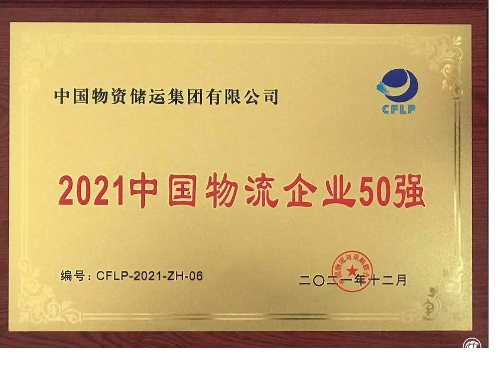 中國物資儲運集團有限公司受邀參加,并榮膺“2021年中國物流企業(yè)50強”。