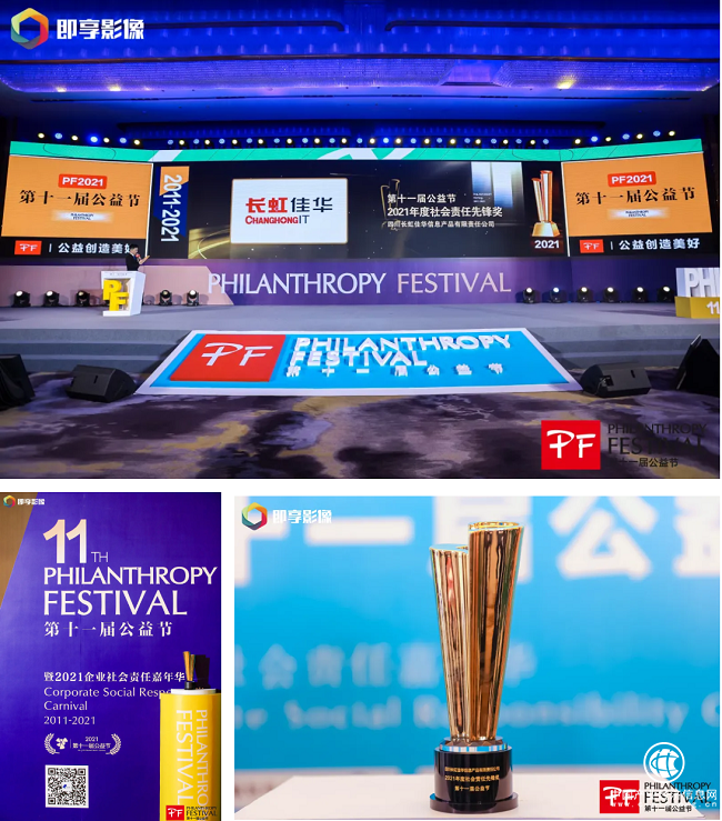 1月13日~14日,第十一屆公益節(jié)在上海隆重召開。作為在中國公益領域有著重要影響力的年度盛會,本屆公益節(jié)匯聚來自公益界、商界、學界、傳媒等領域的眾多代表,攜手各行各業(yè)責任品牌,通過對話、演講、訪談、云連線等豐富的形式分享和傳遞公益理念,打造企業(yè)社會責任嘉年華。作為新型的ICT綜合服務商,長虹佳華在深耕行業(yè)、穩(wěn)健前行的同時,始終不忘肩負的社會使命與責任,積極投身公益事業(yè),認真踐行社會責任,走出了一條創(chuàng)新開拓與責任擔當齊頭并進的特色發(fā)展之路,獲得“社會責任先鋒獎”。