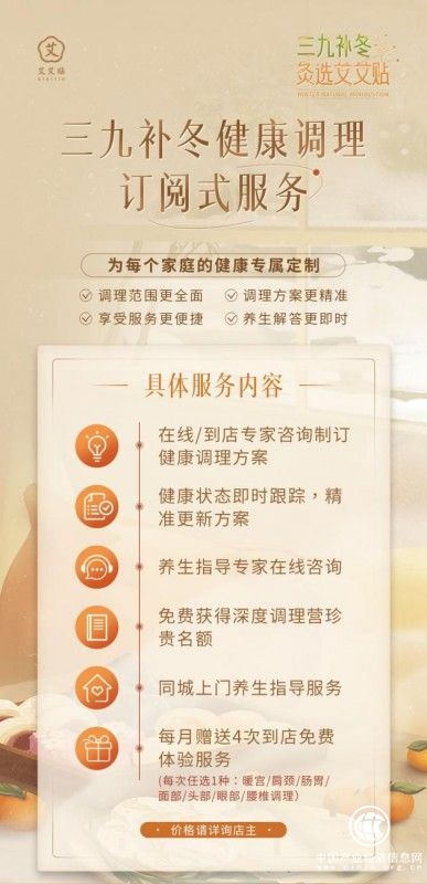 同時(shí),艾艾貼也在各門店上線了三九補(bǔ)冬健康調(diào)理訂閱式服務(wù),由養(yǎng)生指導(dǎo)專家根據(jù)用戶的狀態(tài)制訂健康調(diào)理方案,并在后續(xù)即時(shí)跟蹤健康狀態(tài),精準(zhǔn)更新方案,還將提供在線咨詢和同城上門養(yǎng)生指導(dǎo)服務(wù),悉心調(diào)理用戶健康。