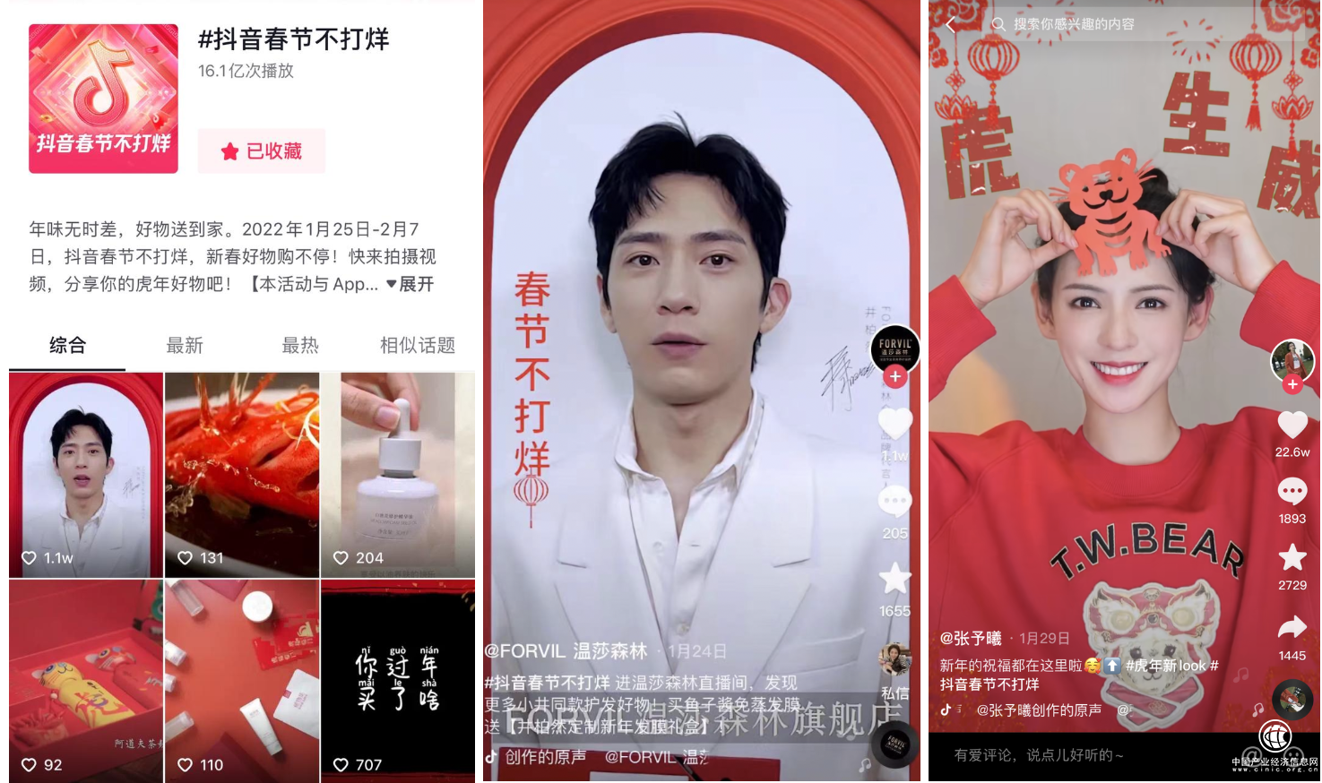 今年春節(jié),#抖音春節(jié)不打烊 的話題霸占了不少人的手機(jī)屏幕。春節(jié)穿搭、變美好物、彩色餃子……海量優(yōu)質(zhì)帶貨短視頻,用天南海北的“無時(shí)差”年味好物,充盈了不少人春節(jié)假期的閑暇時(shí)刻。截至目前,#抖音春節(jié)不打烊 主話題獲得超16億觀看量。