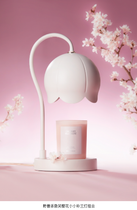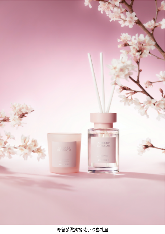 2022年初春,藝術(shù)生活方式品牌野獸派正式推出春季限定 “微笑櫻花”系列。該系列集香氛/花藝/家居為一體,延續(xù)嗅覺與視覺雙重美學(xué)概念,并創(chuàng)新推出擴(kuò)香晶石氛圍燈,與可愛小狗一起打造粉嫩春天。