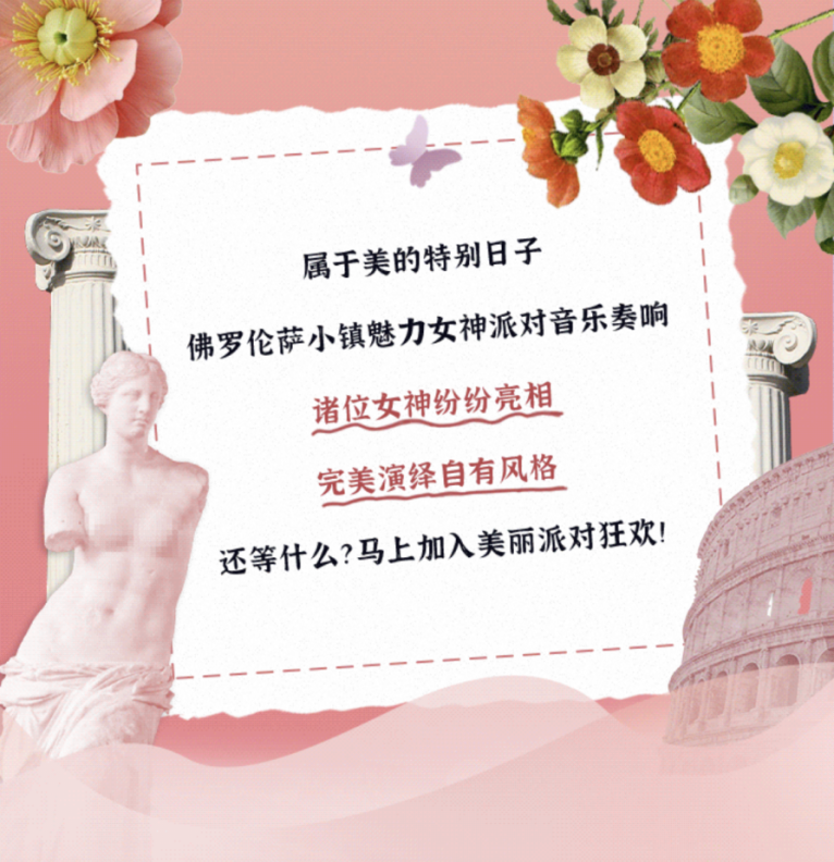 屬于美麗的特別日子,佛羅倫薩小鎮(zhèn)的女神派對正式開啟。在陽春三月,我們相約佛羅倫薩小鎮(zhèn),約“惠”女神節(jié)!