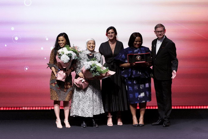 演講過后,思禮樂先生與卡地亞中東、印度及非洲地區(qū)首席執(zhí)行官,蘇菲·杜瓦托女士 (Sophie Doireau) 共同為9位“影響力獎”獲獎人頒獎。 本次獲獎?wù)呔鶠闅v屆獎項(xiàng)獲獎人,她們的企業(yè)在各自領(lǐng)域均產(chǎn)生了強(qiáng)大的影響力。思禮樂先生 (Cyrille Vigneron) 和蘇菲·杜瓦托女士 (Sophie Doireau) 揭曉了基于聯(lián)合國可持續(xù)發(fā)展目標(biāo)的3個影響力獎項(xiàng)類別的一等獎獲獎人,分別為“改善生活”(Improving Lives)、“保護(hù)地球”(Preserving the Planet) 和“創(chuàng)造機(jī)會”(Creating Opportunities)。
