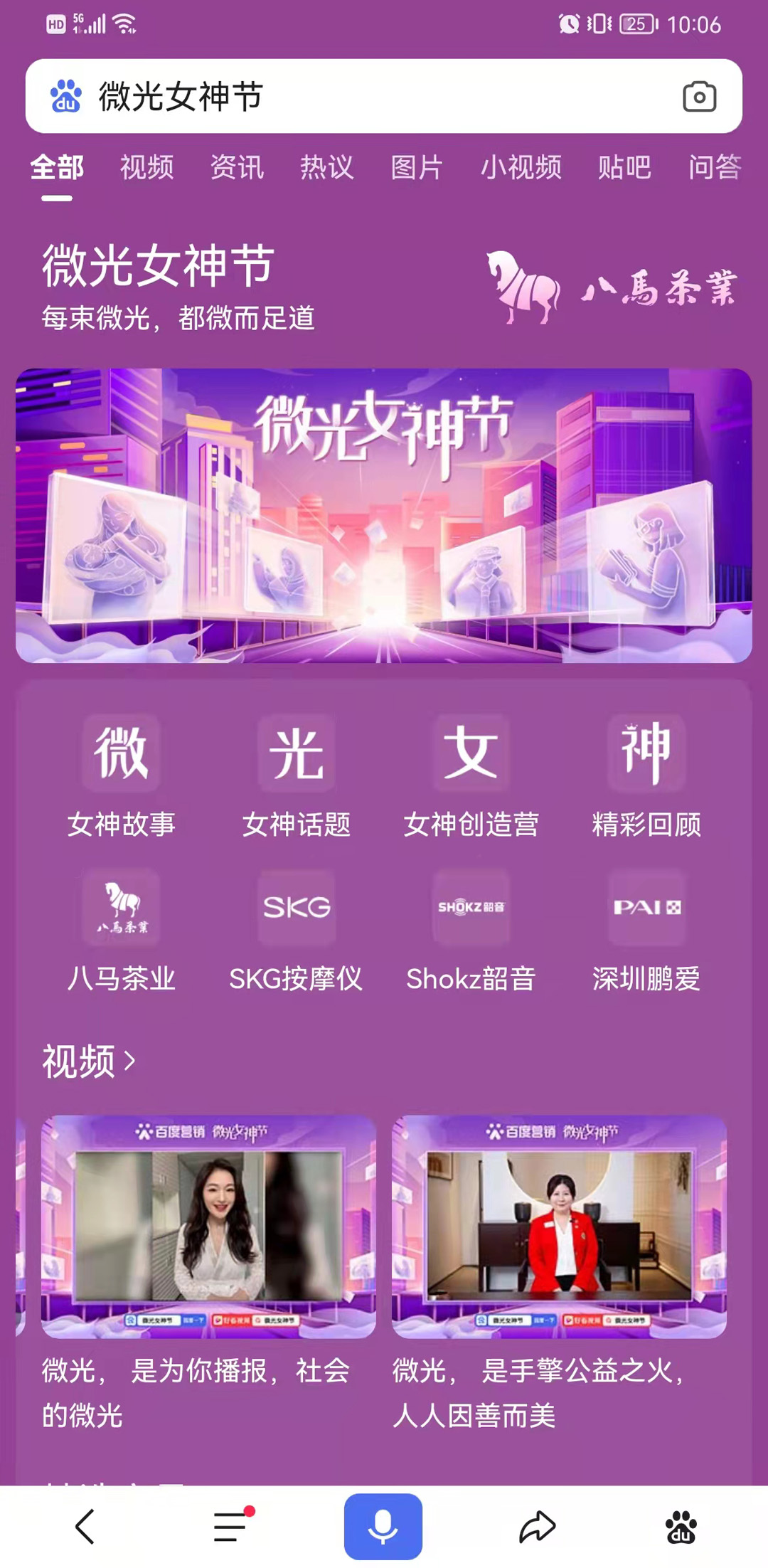 百度APP上線“微光女神節(jié)”專(zhuān)屬會(huì)場(chǎng),通過(guò)一段她們的故事微訪談視頻,來(lái)了解其他女性如何開(kāi)啟自己的“恒星”般的閃耀人生!以普通人的平凡書(shū)寫(xiě)不平凡的屬于自己的人生。