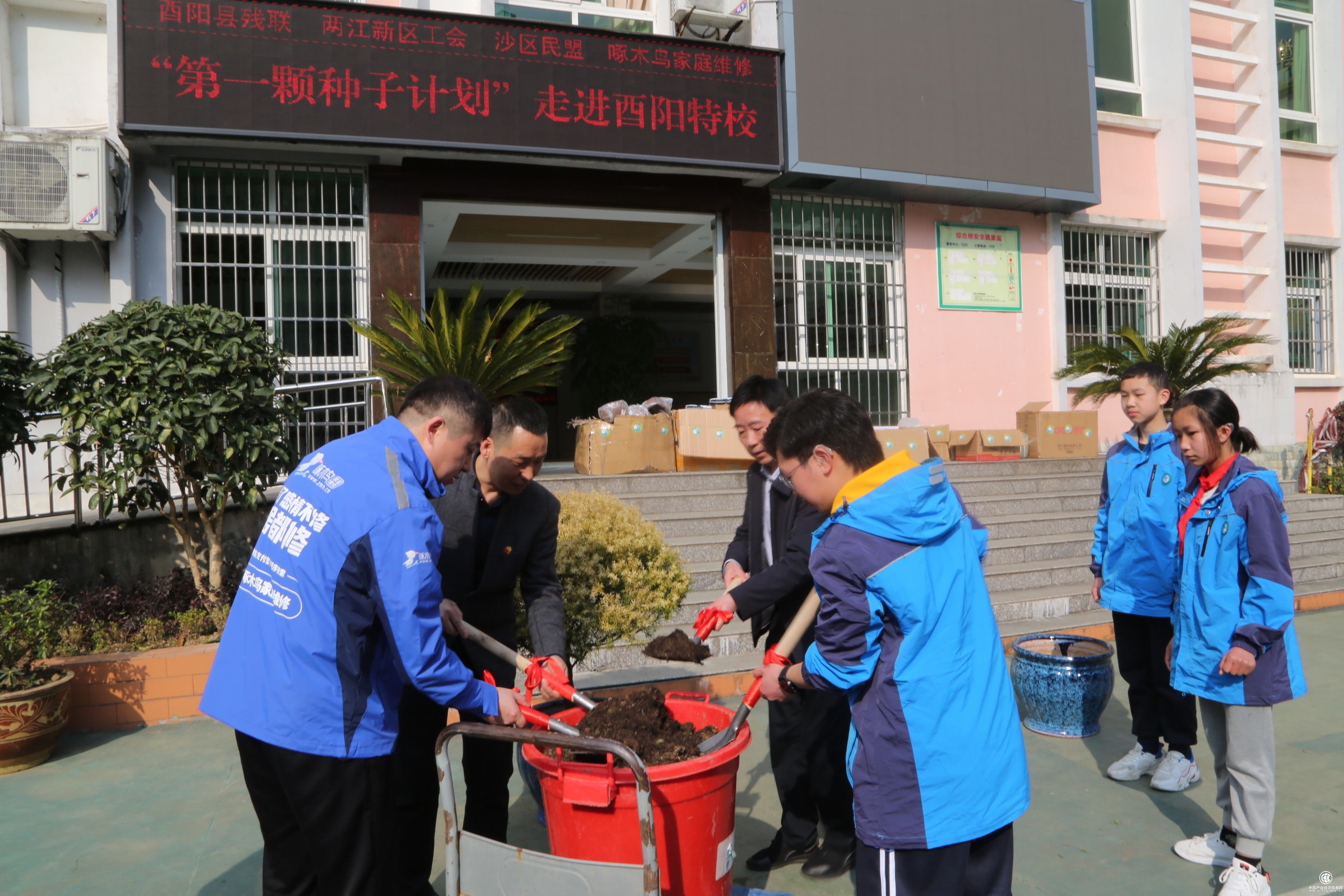 2022年3月11日,正值312植樹節(jié)前夕,啄木鳥家庭維修(簡稱:啄木鳥)和兩江工會、沙區(qū)民盟一行前往酉陽縣特殊教育學校踐行“第一顆種子計劃”公益活動,酉陽縣殘聯(lián)現(xiàn)場指導和協(xié)辦。啄木鳥一行用實際行動關(guān)愛與陪伴當?shù)靥厥鈨和c孩子們一起植樹,辛勤灌溉,將希望和愛種植在孩子們的心中。