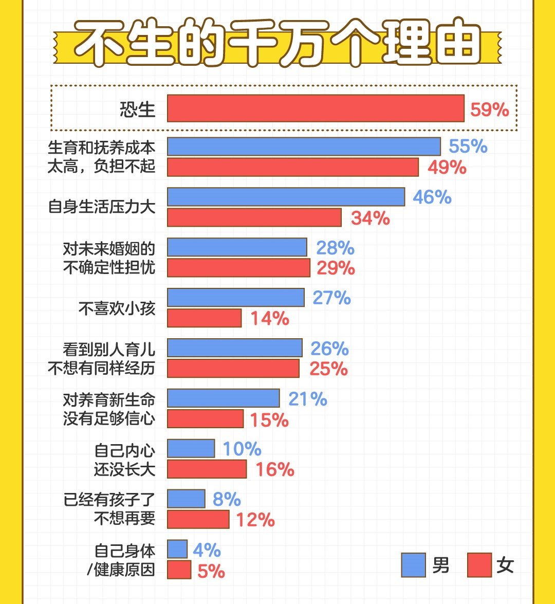 相比男性,女性在生育這件事上不僅要承擔身體和心理的雙重負擔,一些外部因素也讓對此望而卻步。