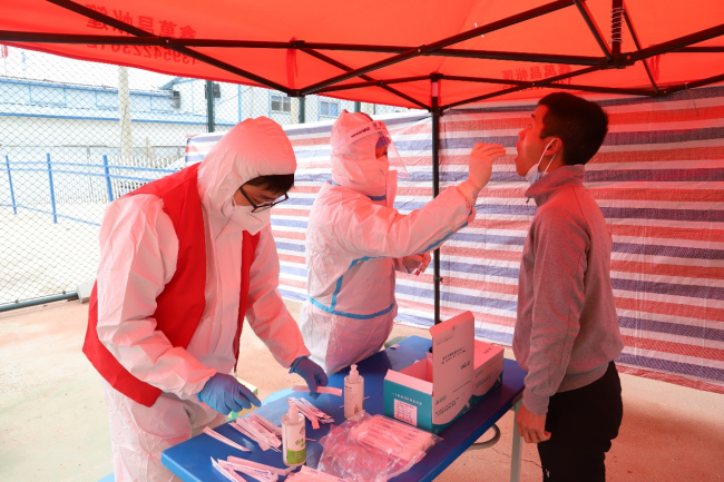 面對當前異常嚴峻復雜的疫情防控形勢,紅島安置房東部組團項目積極配合紅島街道及政府有關政策要求,急響應,快行動,迅速啟動項目應急預案,成立疫情防控小組,配合街道在項目成立核算檢測點,進行全員新冠疫情排查。同心戰(zhàn)疫,共克時艱。檢測現(xiàn)場全體工人佩戴口罩,間隔一米,有序進行信息登記,拭子采樣。
