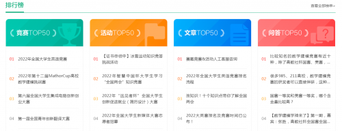 (“賽氪”平臺的競賽、活動、文章、問答TOP50排行榜)