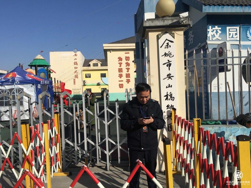 (圖為余姚市煙草專賣局專賣人員在學(xué)校門口在勘測距離,開展實地調(diào)查、統(tǒng)計。)