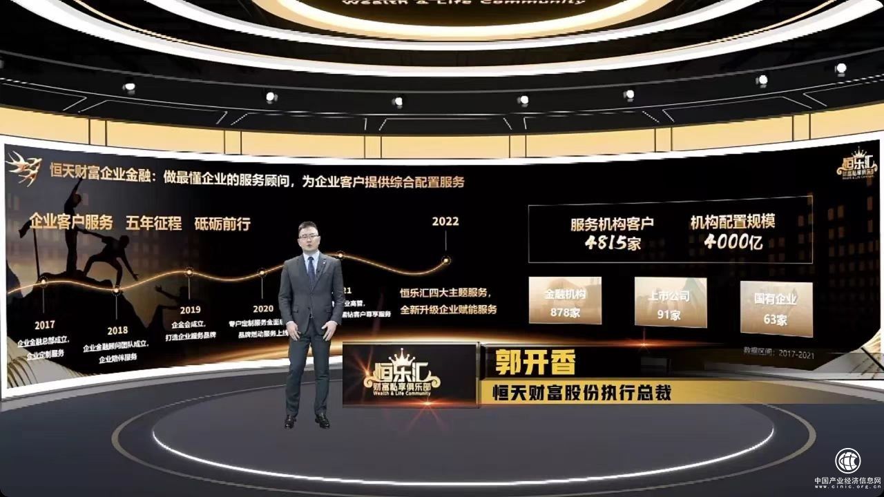 恒天財富股份執(zhí)行總裁郭開香以《科技賦能,服務(wù)創(chuàng)新,財富共盈》為主題,分享了全新啟航的企業(yè)客戶服務(wù)的新服務(wù)、新體驗。他介紹,恒天財富企業(yè)金融總部成立于2017年,努力成為“最懂企業(yè)的服務(wù)顧問”,一直致力于為企業(yè)客戶提供綜合配置服務(wù)。截至2021年底,已服務(wù)機構(gòu)客戶4815家。