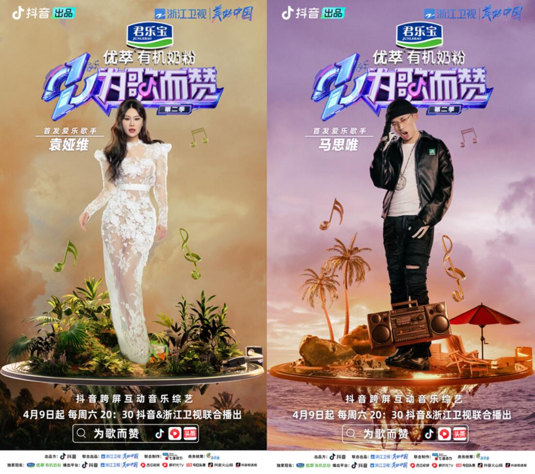 4月9日起每周六20:30,由抖音出品的跨屏互動(dòng)音樂(lè)綜藝君樂(lè)寶優(yōu)萃有機(jī)奶粉《為歌而贊》第二季即將在抖音和浙江衛(wèi)視播出,西瓜視頻、鮮時(shí)光TV、今日頭條、抖音火山版、抖音極速版聯(lián)合播出!節(jié)目自官宣定檔后便大受關(guān)注,歌手陣容與升級(jí)后的節(jié)目舞美還有節(jié)目創(chuàng)新的賽制與現(xiàn)場(chǎng)互動(dòng)玩法,使新一季更加值得期待。明晚《為歌而贊》第二季正式開(kāi)播,首發(fā)愛(ài)樂(lè)歌手雷佳、楊宗緯、郁可唯、袁婭維、馬思唯、柳爽、王赫野以及愛(ài)樂(lè)摯友王嘉爾,將為觀眾獻(xiàn)上多場(chǎng)音樂(lè)舞臺(tái)。