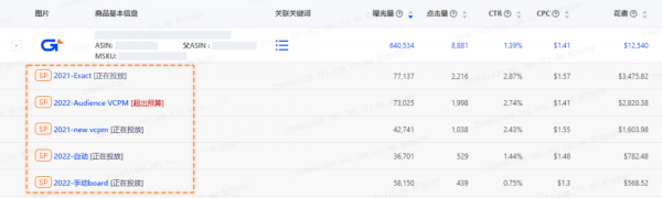 例如,點(diǎn)開ASIN前的“+”,發(fā)現(xiàn)ASIN在多個活動中有投放,而A活動的表現(xiàn)很好,B活動表現(xiàn)很差,白白燒錢,則可以進(jìn)入B廣告活動暫停該ASIN的投放。