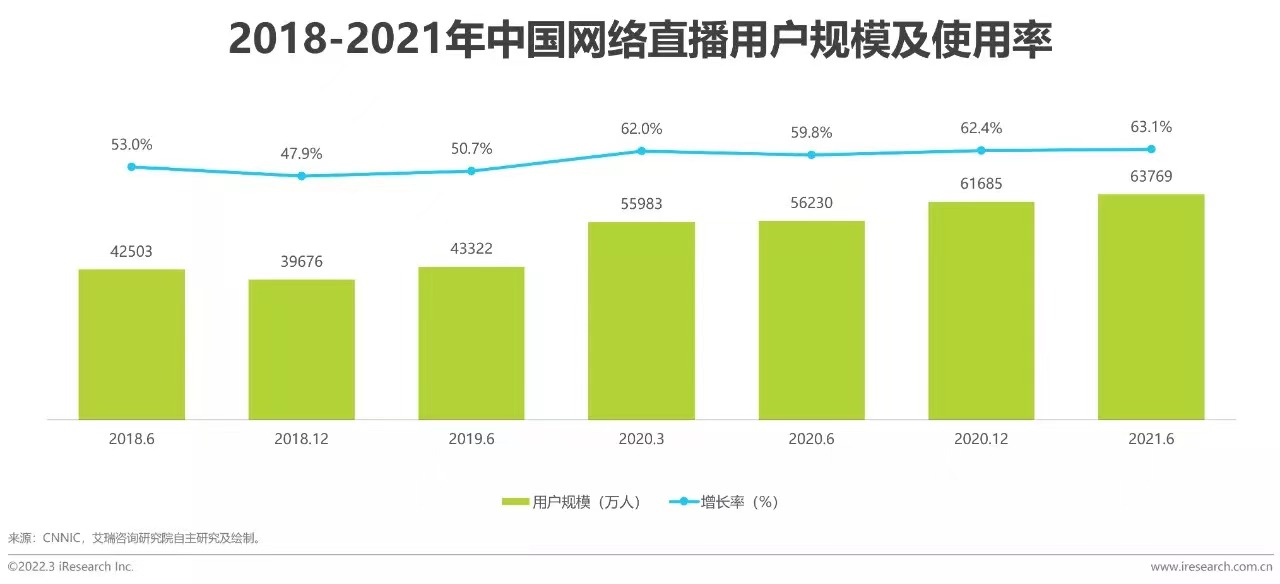 根據(jù)中國互聯(lián)網(wǎng)信息中心(CNNIC)的統(tǒng)計數(shù)據(jù)來看,受到疫情的助推,2020年以來網(wǎng)絡直播的用戶使用率明顯上升,近幾年網(wǎng)絡直播的用戶規(guī)模始終保持上升趨勢。同時,用戶對在線醫(yī)療、在線辦公等新業(yè)態(tài)的接受度不斷攀升,日常生活和工作線上化的趨勢不斷加深,網(wǎng)絡直播能力也逐漸發(fā)展為企業(yè)在數(shù)字化時代的新基建能力。進而,用戶線上化需求提升帶來的機會,也帶動了企業(yè)直播行業(yè)的發(fā)展。