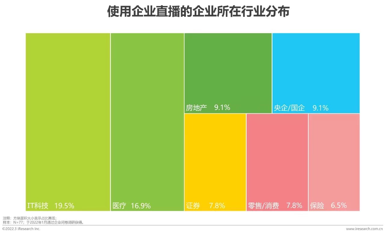 企業(yè)直播已廣泛應用于各行業(yè),中腰部規(guī)模企業(yè)比例明顯增多