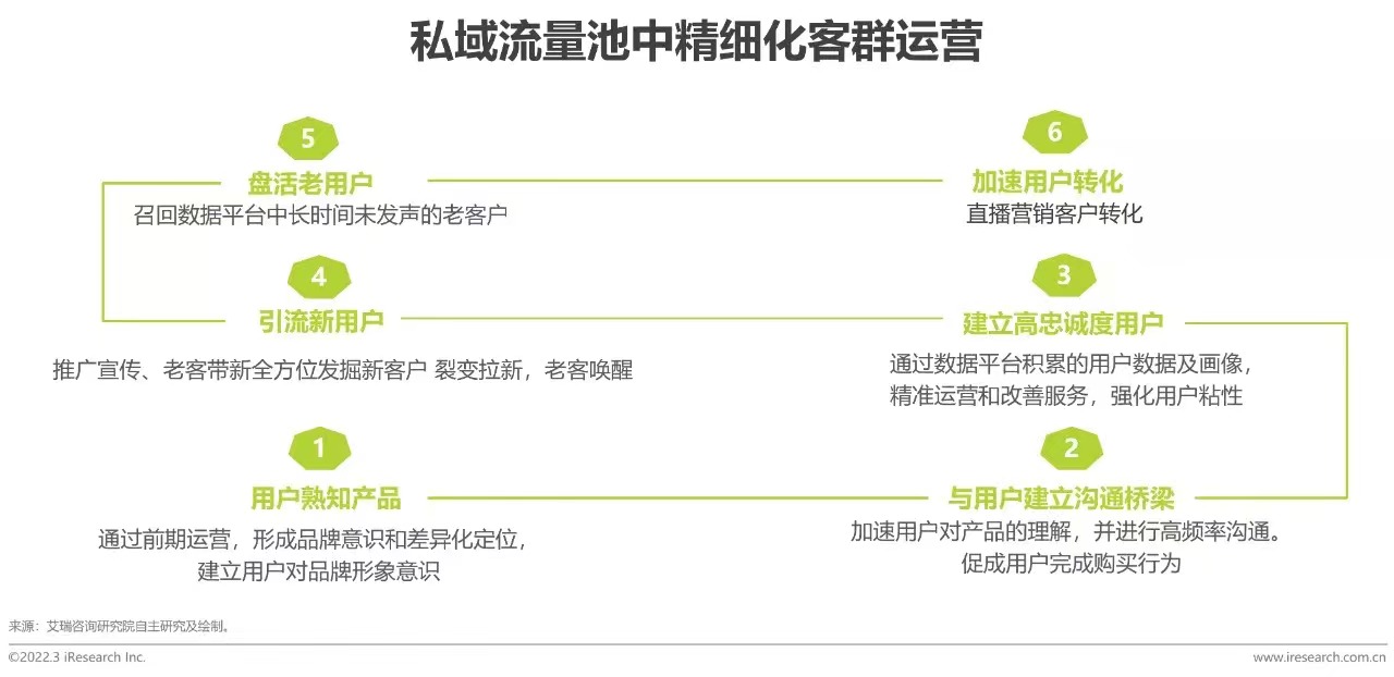 相對于公域流量,私域流量做為企業(yè)的數(shù)據(jù)資產(chǎn),不僅擁有成本低、用戶忠誠度高,營銷鏈路一體化、數(shù)據(jù)畫像積累等核心優(yōu)勢,更具備可觸達、可交互的獨特性。私域流量建立用戶的全生命周期價值,更加精準的滿足用戶的需求,實現(xiàn)更長期的價值挖掘與創(chuàng)造,提升品牌價值。此外,搭建私域流量池閉環(huán)是企業(yè)直播的核心要素。企業(yè)打造公域與私域的平衡,構建流量閉環(huán),才能更好的創(chuàng)造企業(yè)直播價值和能量的最大化。