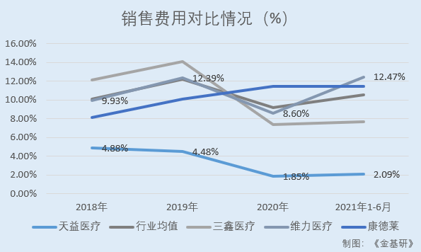 其中,天益醫(yī)療的銷售費(fèi)用率大幅低于同行業(yè)可比公司。