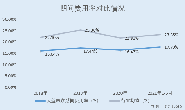 另一方面,天益醫(yī)療的期間費(fèi)用率低于行業(yè)均值,內(nèi)部管控能力優(yōu)秀。