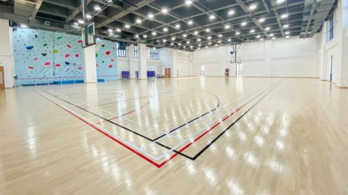 籃球館采用國際籃聯(lián)FIBA認(rèn)證的博納地板漆,無論摩擦力、沖擊吸收率、球回彈力都達(dá)到了賽級(jí)標(biāo)準(zhǔn)。場(chǎng)內(nèi)還有電動(dòng)分割幕布,快速實(shí)現(xiàn)籃球、羽毛球、網(wǎng)球、排球多球場(chǎng)靈活切換。