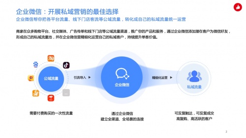 私域流量是指企業(yè)能自主運營,可以反復自由利用,無需付費,又能隨時直接接觸的流量資源,它屬于流量的私有資產(chǎn)。