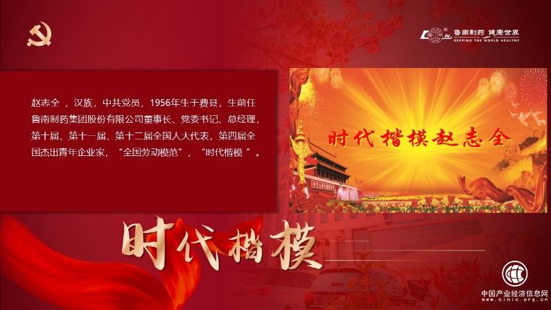 前任魯南制藥集團(tuán)股份有限公司董事長(zhǎng)、黨委書記、總經(jīng)理趙志全同志從2萬元貸款起步,用27年的時(shí)間把一個(gè)凈資產(chǎn)不足20萬元的小廠,建設(shè)成為一個(gè)凈資產(chǎn)60億元、年繳稅9.2億元、具有國(guó)際競(jìng)爭(zhēng)力的現(xiàn)代化制藥集團(tuán)公司,為促進(jìn)地方經(jīng)濟(jì)發(fā)展、帶領(lǐng)群眾脫貧致富作出了突出貢獻(xiàn)。趙志全同志的無私付出令人動(dòng)容,在2016年9月中宣部追授其“時(shí)代楷?!睒s譽(yù)稱號(hào)。