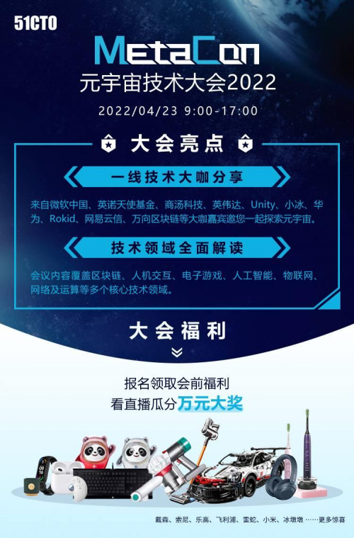 元宇宙是這個(gè)時(shí)代的灰犀牛,是社會(huì)全面數(shù)字化、信息化的結(jié)果。如同凡爾納筆下潛水艇、飛機(jī)等一樁樁預(yù)言的實(shí)現(xiàn),我們正在見證一個(gè)從小說家的構(gòu)想逐漸走進(jìn)我們生活的全新世界,人們也開始用Metaverse來指代數(shù)字世界、虛擬現(xiàn)實(shí)、沉浸式互聯(lián)網(wǎng)等等這些“超越現(xiàn)實(shí)”的世界,一系列虛擬技術(shù)逐漸賦能物理世界,開啟元宇宙生態(tài)落地場景的未來!順勢而為,51CTO精心策劃了業(yè)界首個(gè)重點(diǎn)圍繞元宇宙技術(shù)展開的會(huì)議活動(dòng)——MetaCon 元宇宙技術(shù)大會(huì) 2022,該大會(huì)也將于4月23日在線上開展直播。
