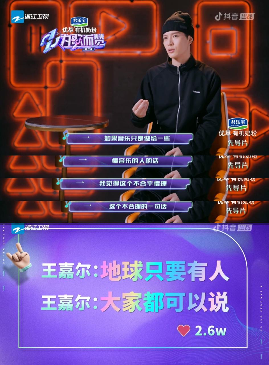 4月9日,由抖音出品,抖音與浙江衛(wèi)視播出,西瓜視頻、鮮時(shí)光TV、今日頭條、抖音火山版、抖音極速版聯(lián)合播出的君樂寶優(yōu)萃有機(jī)奶粉《為歌而贊》第二季,首期一經(jīng)播出就引來了網(wǎng)友不同聲音。首發(fā)愛樂歌手、音樂人陣容引發(fā)網(wǎng)友關(guān)注,有雷佳、楊宗緯、郁可唯、袁婭維、馬思唯、柳爽、王赫野同臺(tái)打歌,以新歌PK抖音熱歌的形式,給大家?guī)砹撕芏嗑饰枧_(tái)。
